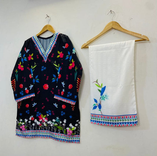 Blue FLORAL 2 PIECE -ELEGANT KURTA SET