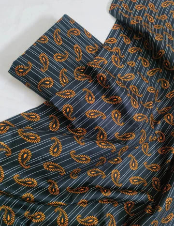 MICRO POLO COTTON- 2 PIECE-Ferozi With Black Flowers US-004•